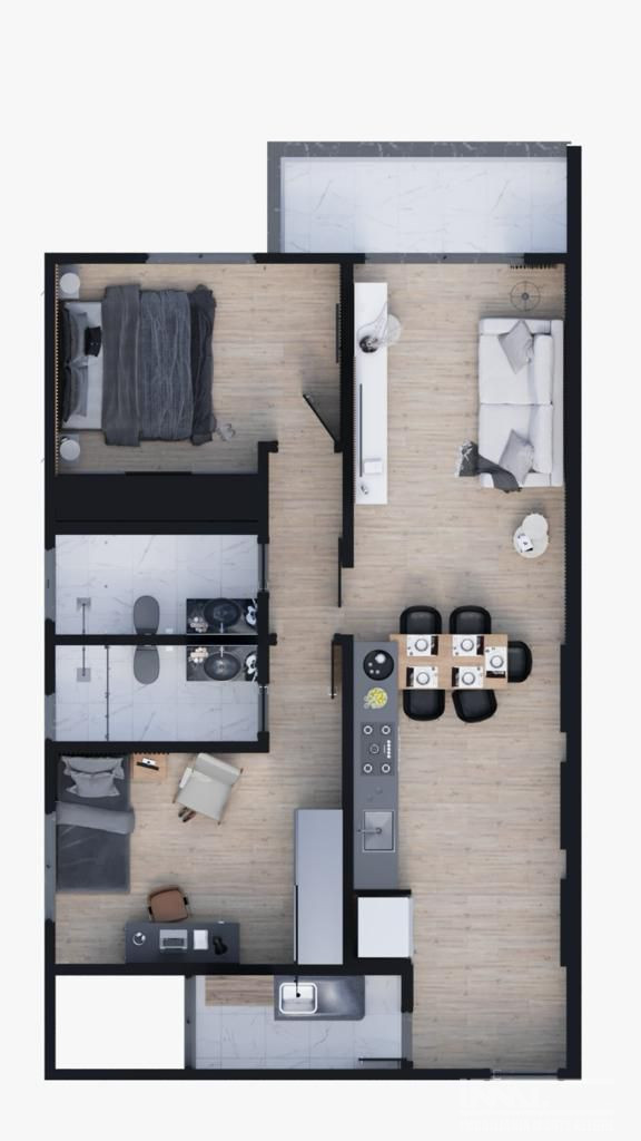 85,00 m² DE ÁREA PRIVATIVA, CONTENDO 02 QUARTOS (SENDO 01 SUÍTE), SALA,